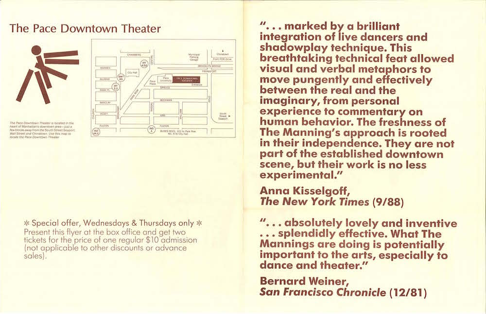 Direct links to each one are also included below, along with pdfs of accompanying programs and, when available and relevant, scripts of spoken text. Some of the scripts also include stage directions and/or lighting cues. (Reviews can be found in commentary.) Further creative process resources can be found under Manuscripts in the Offstage section of this website.