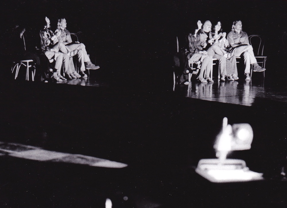 Isabelle Morin—Artist (Nantes, France): "I enjoyed the rarely-offered opportunity to use the whole body (dance, sounds, images) as a first medium and the even rarer one of learning the management of the whole set (lights, music, sound & and the free use of costumes & props)." Complete comments to come.